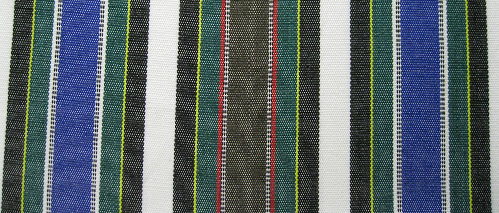 Our inspiration for this fabric came from right here in Cajola, where these colors are popular for our “mantels” (table runners). But we wove the stripes in a wide cloth to make tablecloths to sell in the US. We wove the stripes in the traditional brown, green and red stripes, and also have woven a companion fabric with cobalt instead of the red. We are selling the fabric by the yard at our Sunday market with some success already!